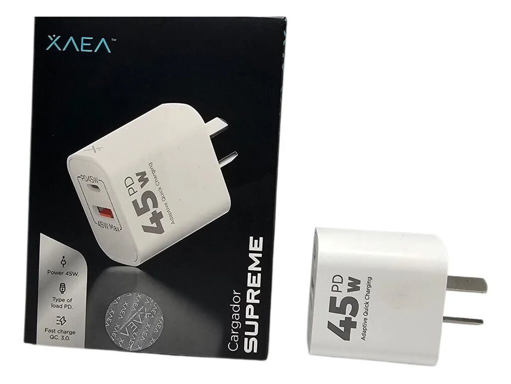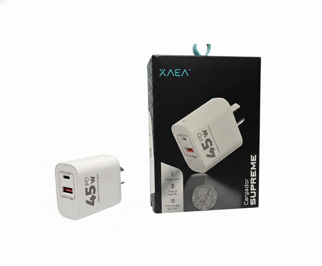 Potencia Superior (45W): Suficiente energía para cargar celulares de gama alta (como ciertos modelos Samsung que requieren 45W), tablets e incluso algunas laptops/MacBooks pequeñas que se cargan por USB-C.