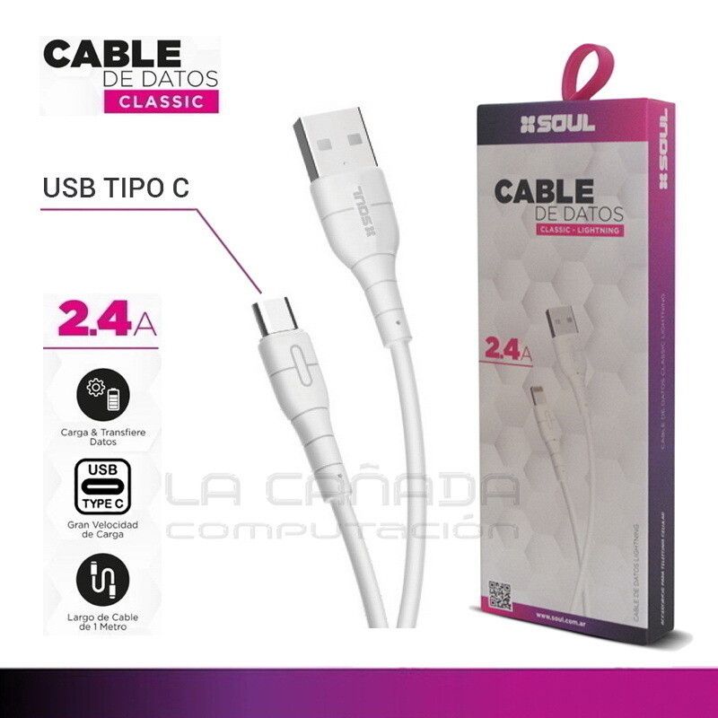 CABLE DE DATOS SOUL USB A TIPO C CLASSIC 2.4 AMP 2M