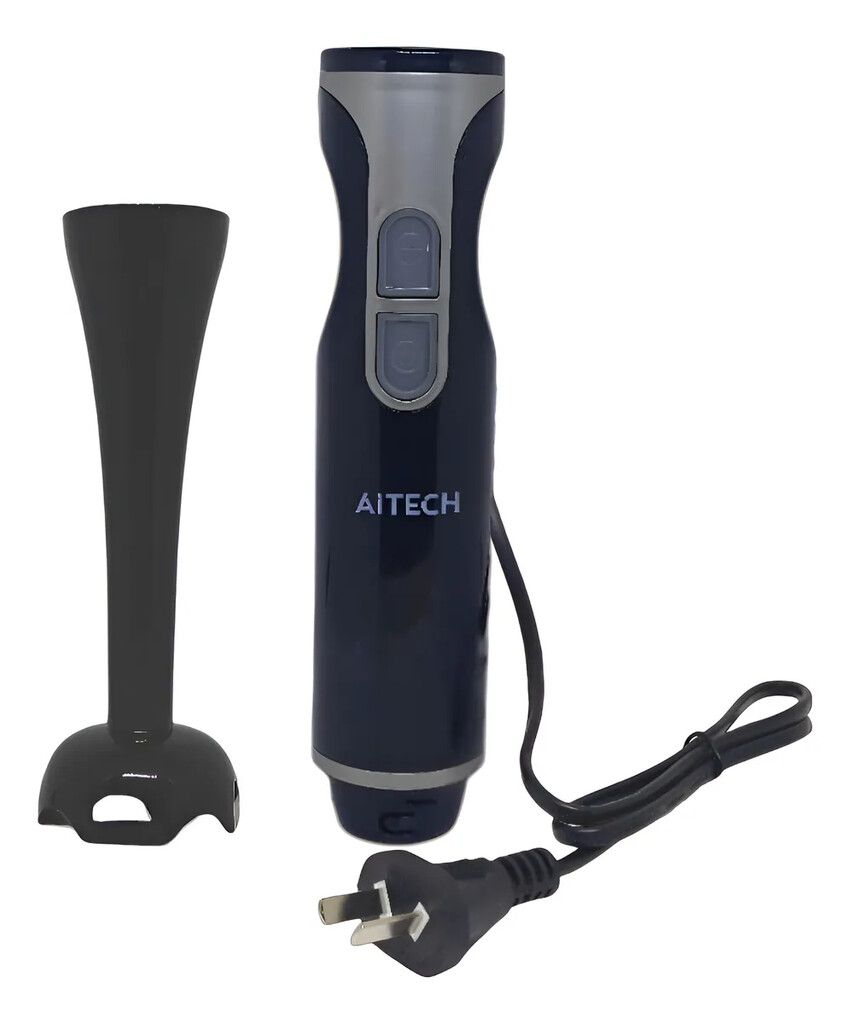 Este tipo de minipimer (licuadora de mano) es un electrodoméstico básico para tareas rápidas de cocina.