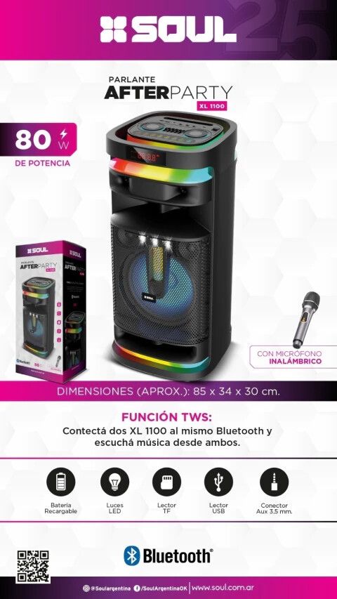 PARLANTE BLUETOOTH PORTATIL SOUL XL1100 AFTER PARTY 80W CON MICROFONO INALAMBRICO